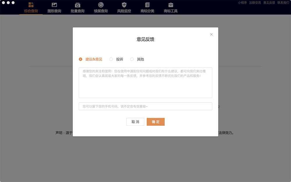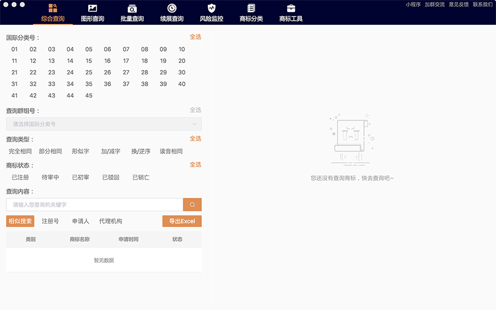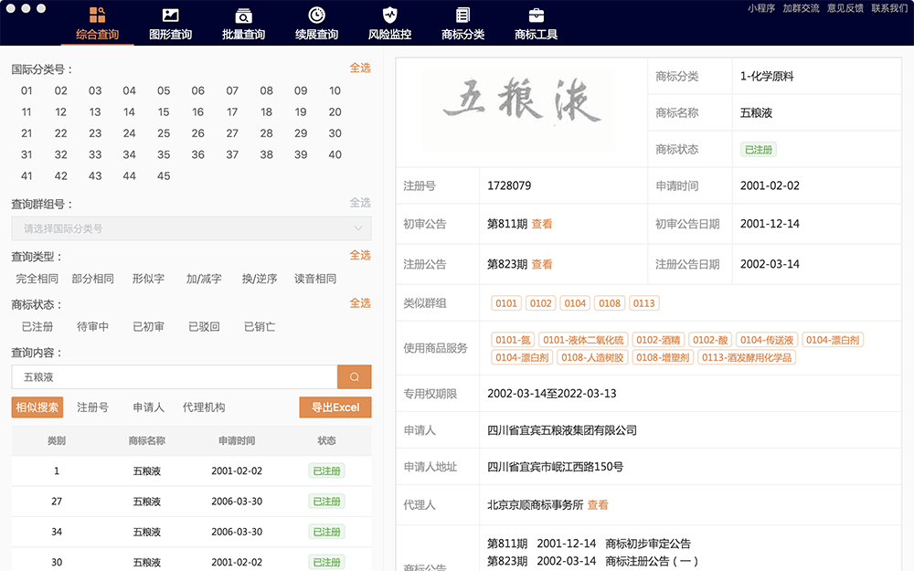 精準(zhǔn)展示商標(biāo)信息多種查詢(xún)類(lèi)型可選